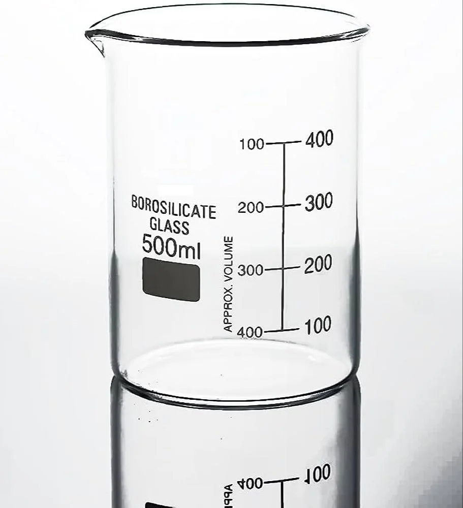 Premium 500ml borosilicate glass beaker with clear graduation marks for precise measurements. Heat-resistant, chemical-proof, and ideal for lab experiments.