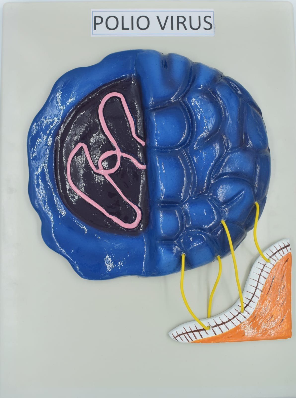 The Polio Virus Model provides a highly detailed three-dimensional representation of the poliovirus, emphasizing capsid structure, morphology, and surface features. Constructed from laboratory-grade materials, it ensures durability and withstands repeated handling in laboratory environments. The model features color-coded components to distinguish between structural regions of the virus, facilitating accurate observation and understanding of its morphology. Its intricate detailing highlights viral surface proteins, capsid arrangement, and symmetry, allowing thorough inspection of key structural aspects. The stable base ensures secure placement for study or demonstration purposes, while removable elements allow close examination of specific components, supporting detailed structural analysis. The design prioritizes both realism and usability, providing a practical tool for precise visualization of viral anatomy. This model is ideal for laboratory settings requiring a durable, accurate, and informative representation of the poliovirus. It combines functional durability with educational clarity, offering a convenient way to explore viral structure in three dimensions. Thoughtfully engineered to support easy handling, detailed examination, and long-term preservation, the Polio Virus Model delivers a comprehensive visualization of virus morphology while maintaining structural integrity. Its realistic design, color-coded detailing, and sturdy construction make it a versatile laboratory tool for observation, demonstration, and structural exploration, ensuring clear understanding of poliovirus anatomy with enhanced practical usability.